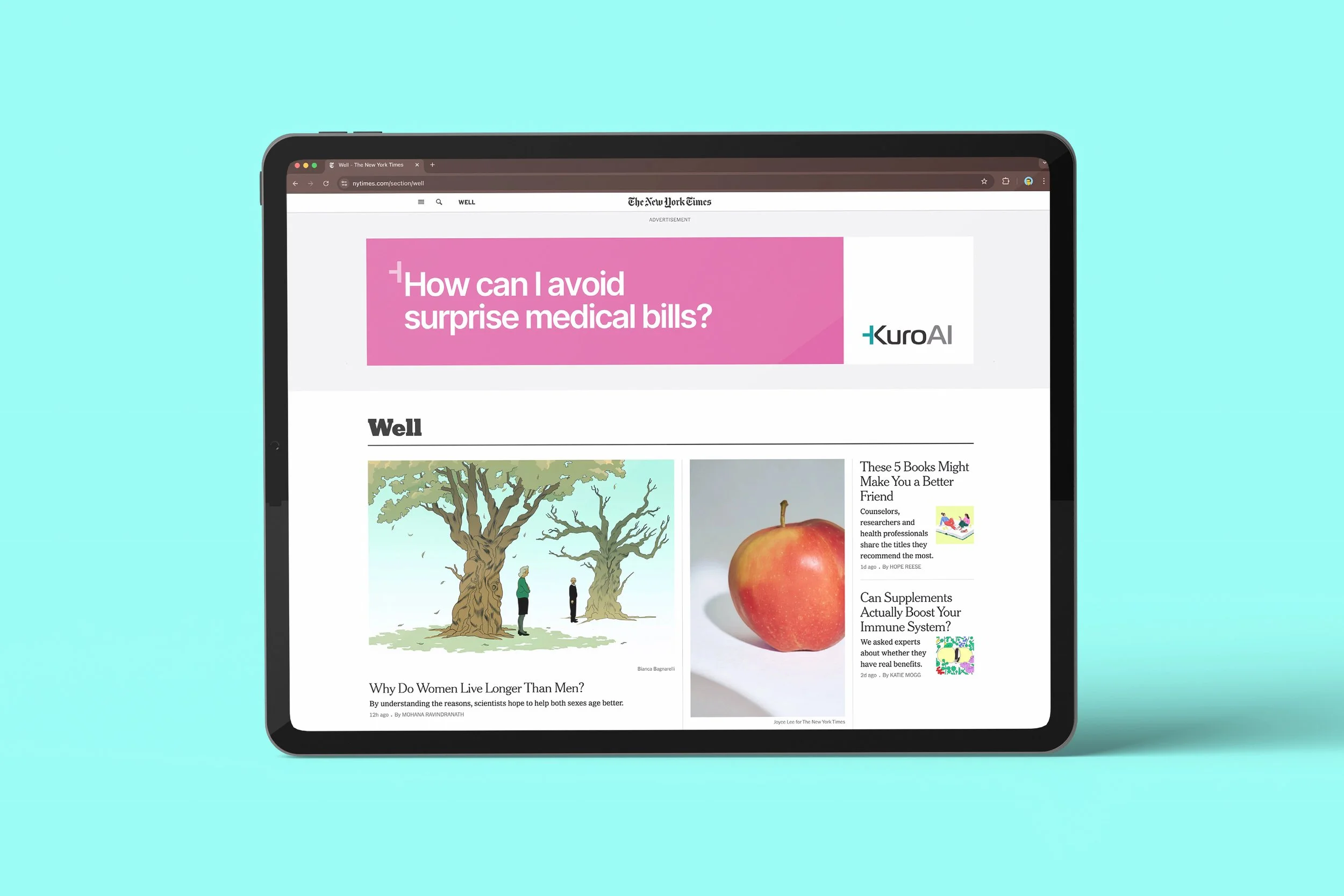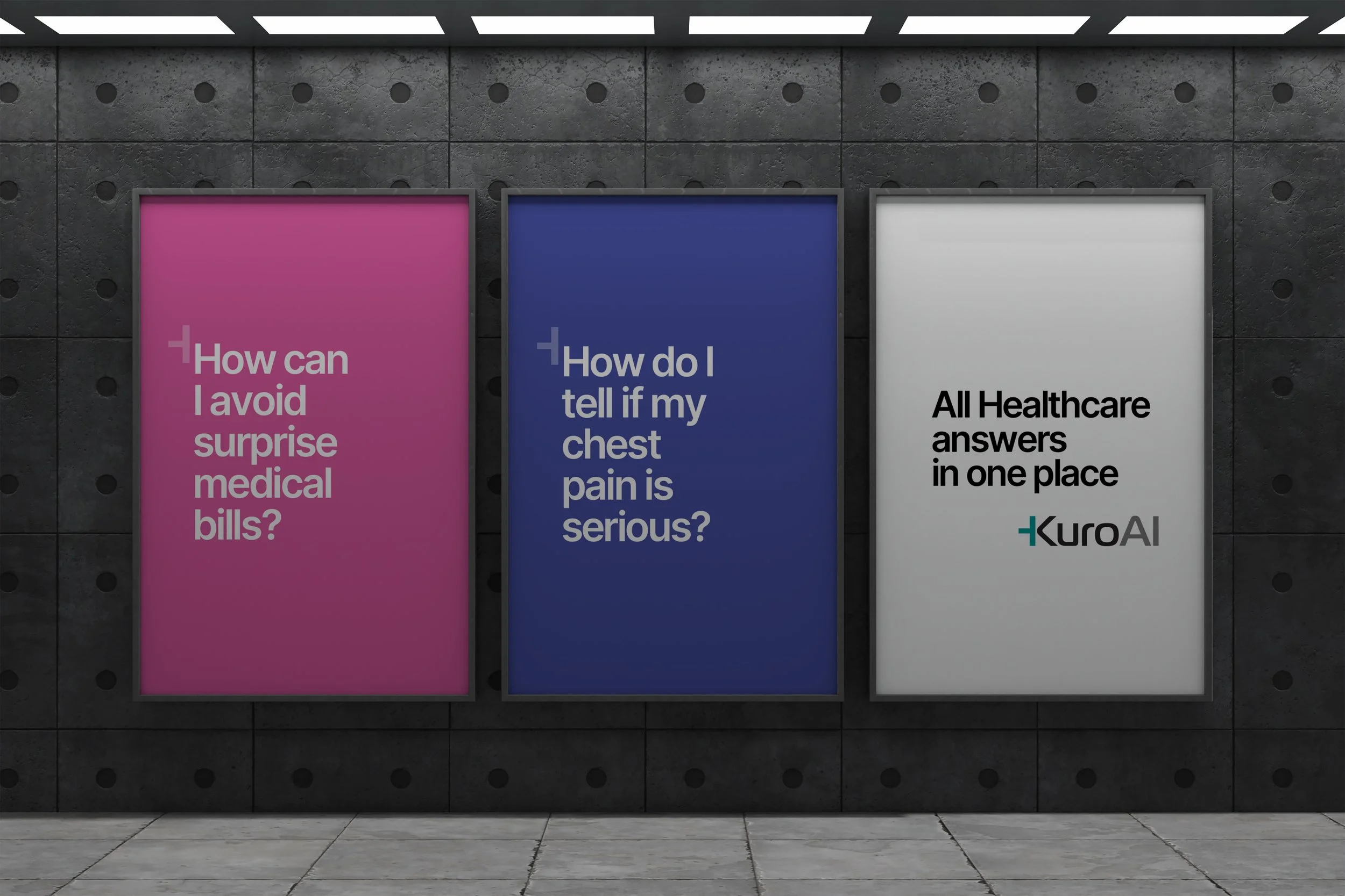 The launch of KuroAI introduced a brand built on intelligence, trust, and accessibility—designed to make navigating healthcare as seamless as asking a question. Inspired by the colors most commonly seen in doctors’ and nurses’ scrubs—light teal, pink, and bluish purple—the visual identity balances familiarity with innovation, making advanced AI feel both approachable and powerful. The art direction revolves around the most common healthcare questions people ask, shaping a design language that is clear, intuitive, and engaging.